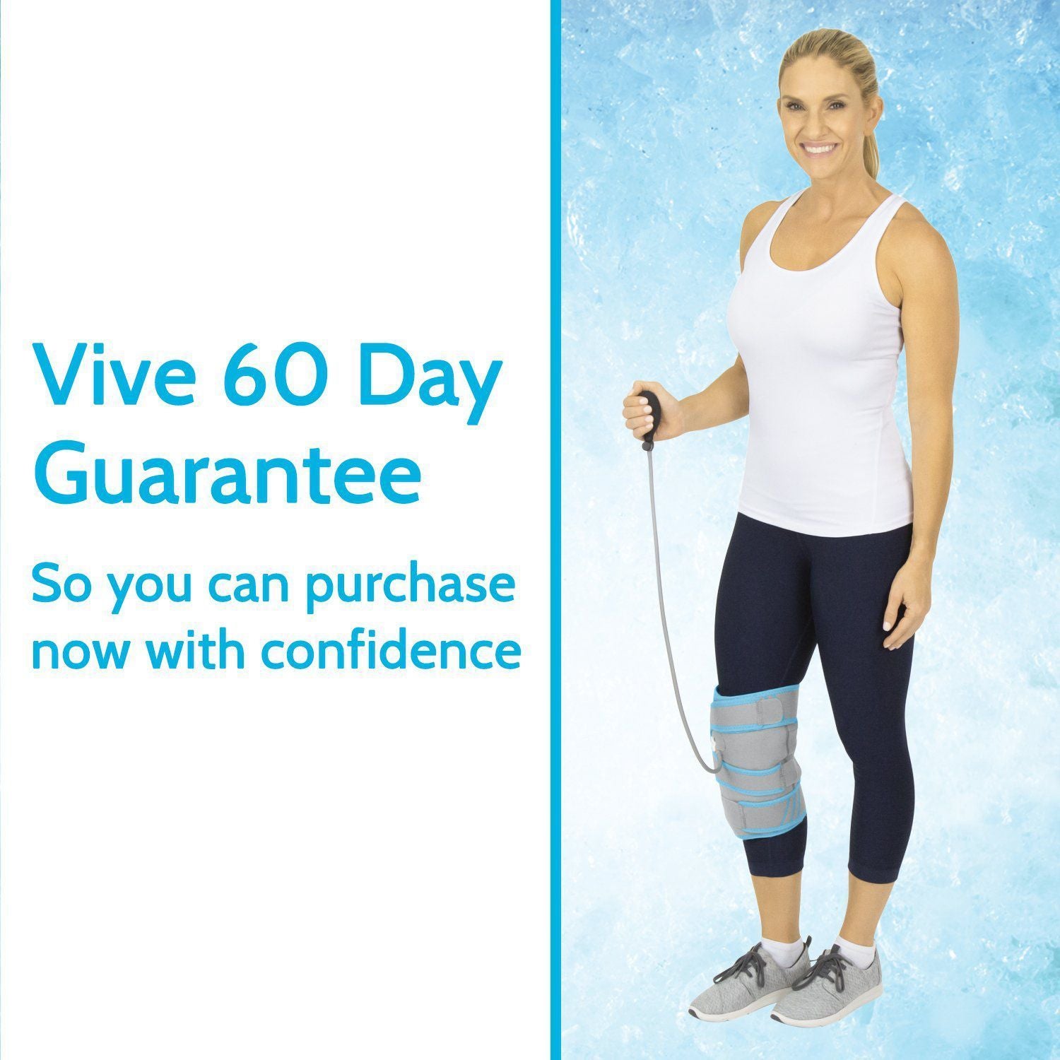 Alivio eficaz del dolor de rodilla Combinando una terapia calmante de frío o calor con compresión específica, la venda de hielo de compresión Vive alivia eficazmente el dolor, la inflamación, la hinchazón y la rigidez en la rodilla. Ideal para controlar el dolor debido a esguinces, distensiones, lesiones y cirugía, la envoltura de hielo también ayuda a aliviar el dolor de la artritis y la fatiga muscular.