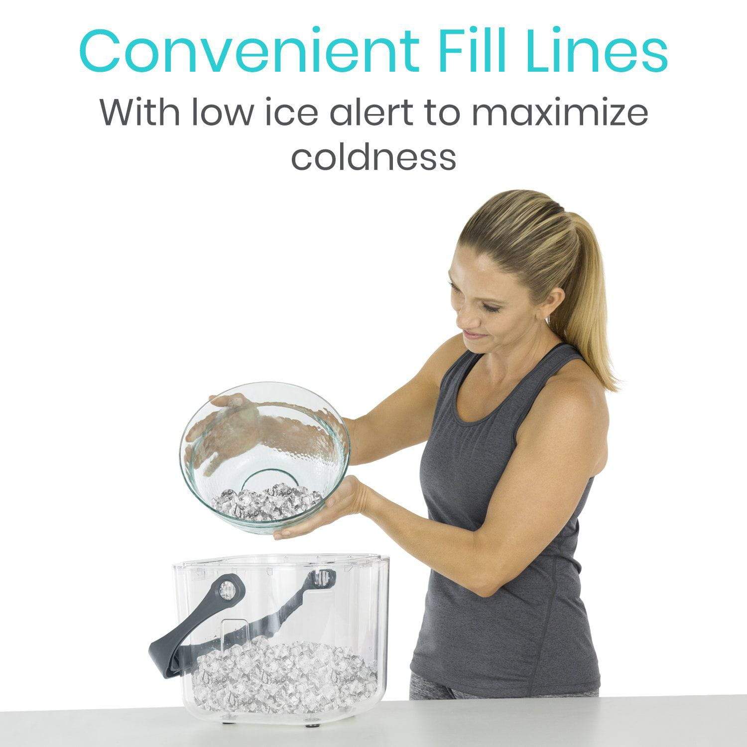 Sí, llenar la unidad con hielo hasta la línea de llenado designada garantiza que el agua se enfríe para una terapia eficaz.