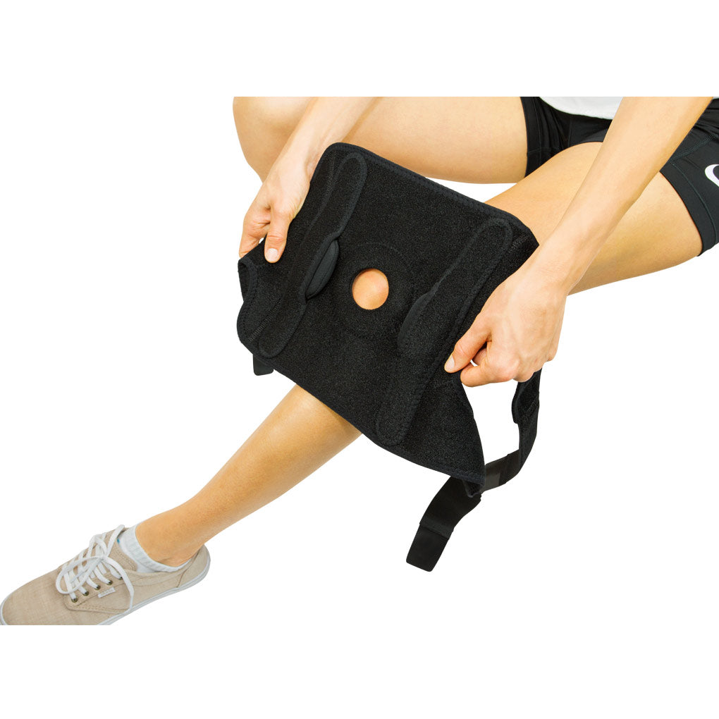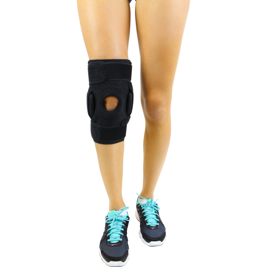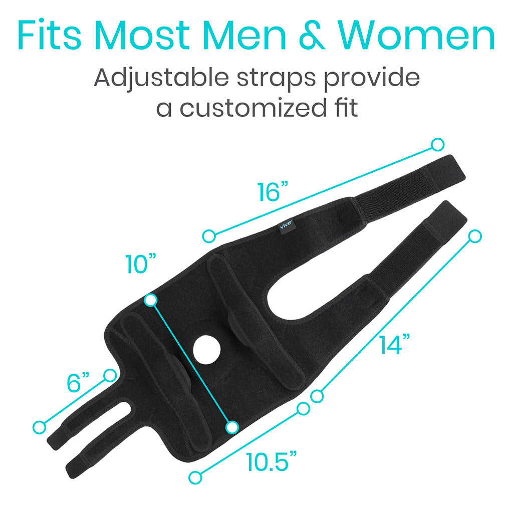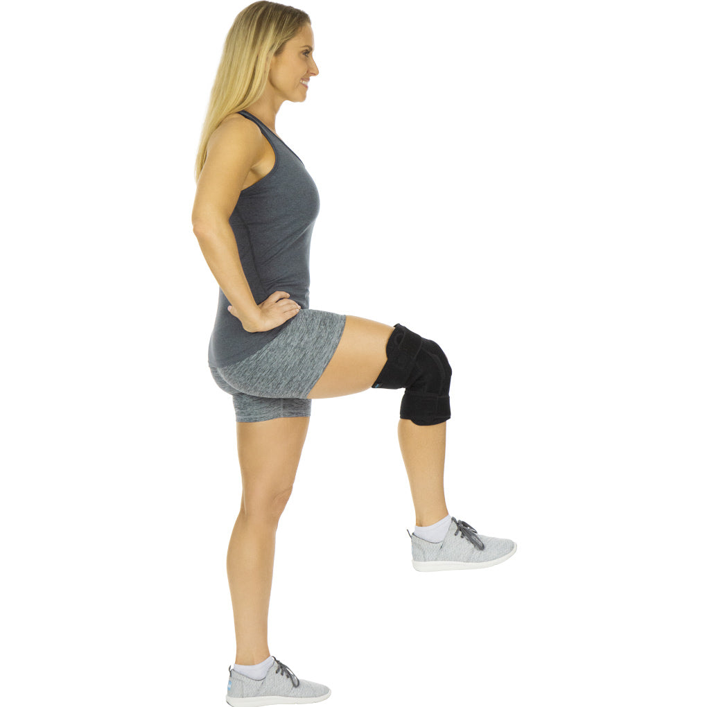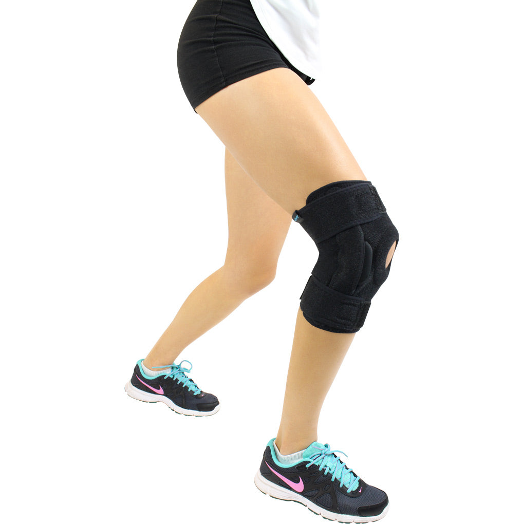 Diseño de rótula abierta ajustable Asegurada con cuatro fuertes correas de sujeción, la rodillera articulada Vive se ajusta fácilmente para adaptarse a la mayoría de los adultos. El diseño de rótula abierta alivia la presión sobre la rótula mientras proporciona soporte estabilizador para lesiones de LCA y MCL, lo que ayuda a aliviar distensiones y esguinces, y para el seguimiento de la rótula.