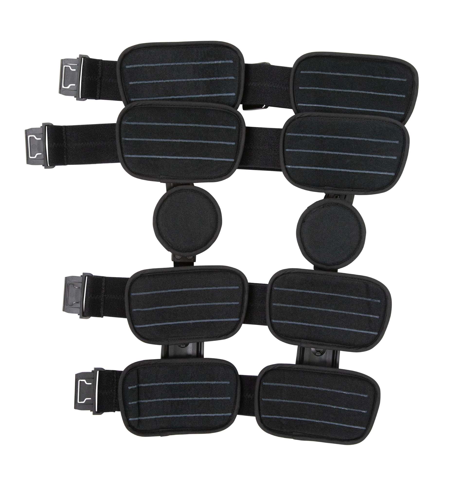 Se adapta a la mayoría de los tamaños de piernas de adultos y es compatible tanto con la pierna izquierda como con la derecha. Las almohadillas de refuerzo pueden extenderse de 18 ”a 23,5”. Las correas de sujeción antideslizantes también son ajustables y se pueden cortar para una mayor personalización.