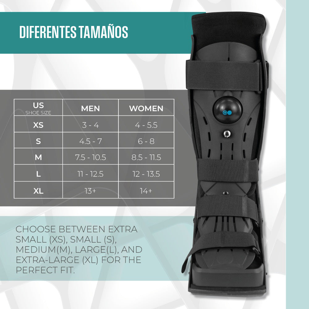 La bota para andador incluye una espinilla y un protector para los dedos para brindar soporte y protección adicionales.