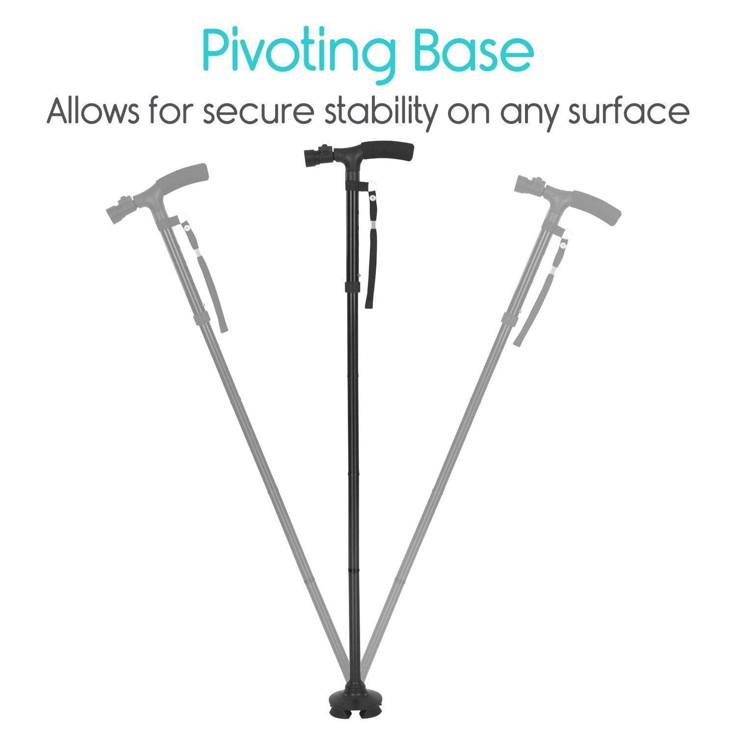 Independiente para una mayor comodidad, la base de bastón cuádruple también pivota para proporcionar tracción adicional en superficies irregulares.
