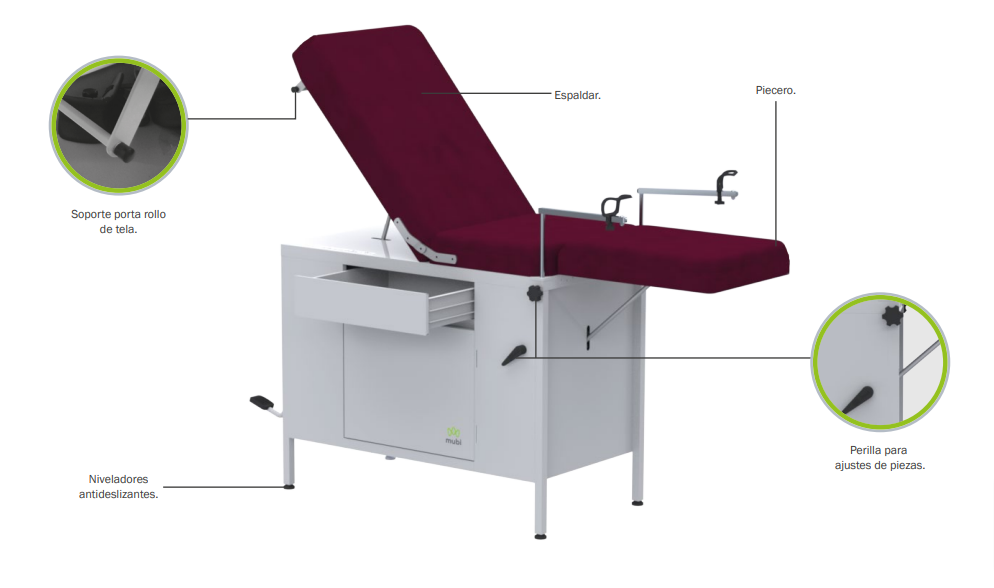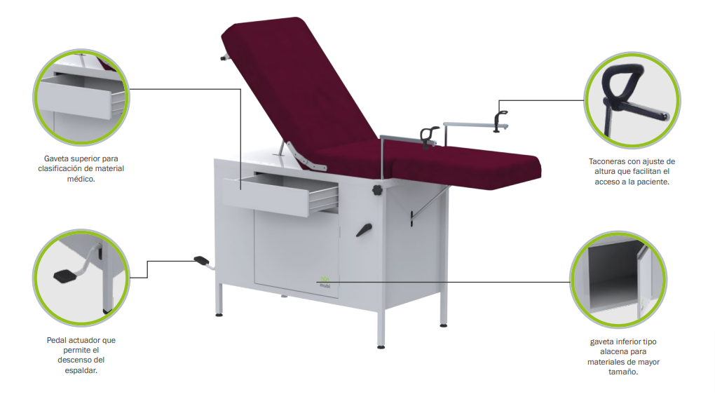 Mesa ginecológica sencilla MUBI HAMILTON con escabel